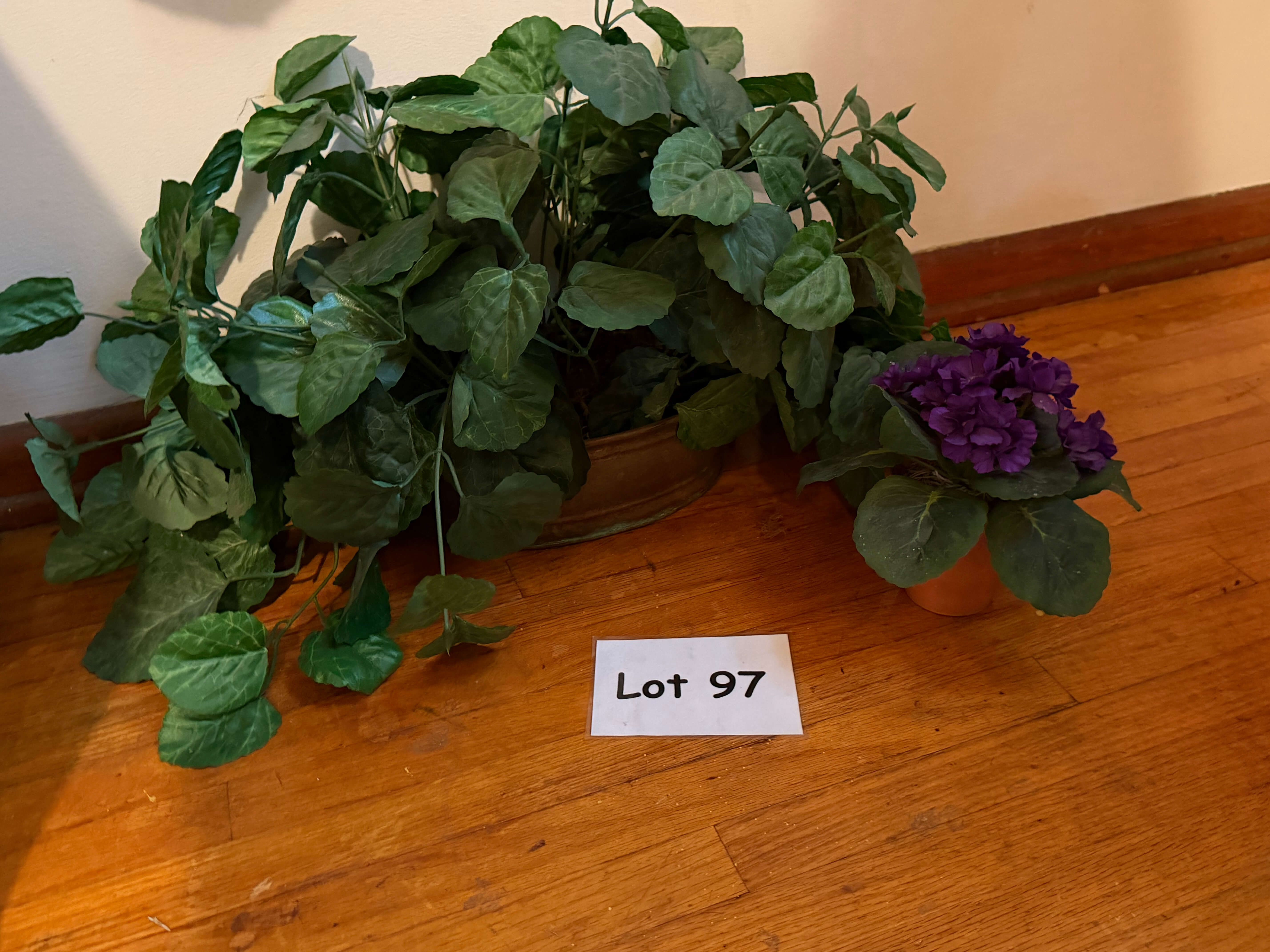 (2) Faux Plants, Larger is in a Brass Planter