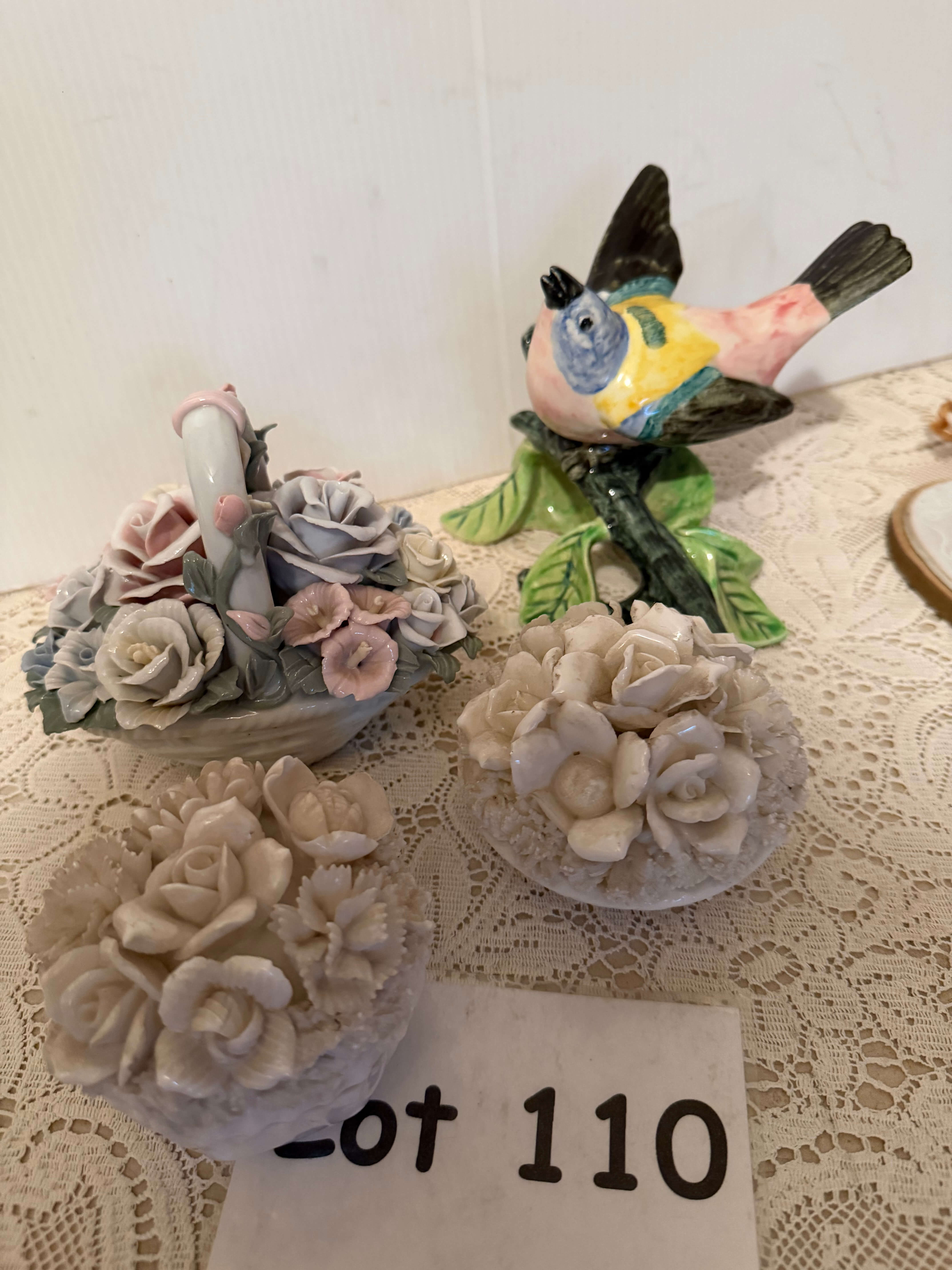 (4) Pc. Sm. Porcelain Flower Decor, Largest is 4"w
