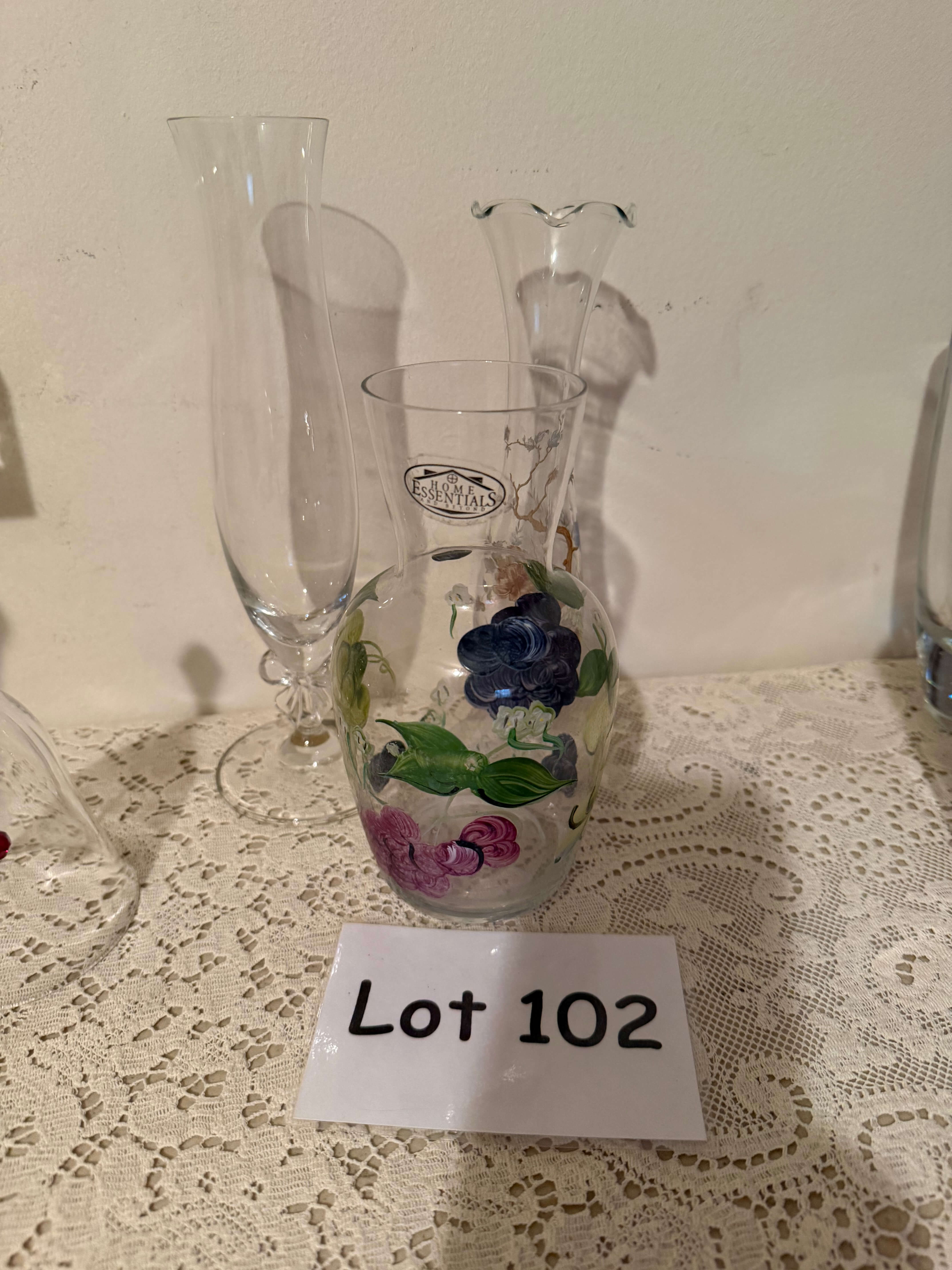(3) Painted Glass Vases, tallest is 9"h