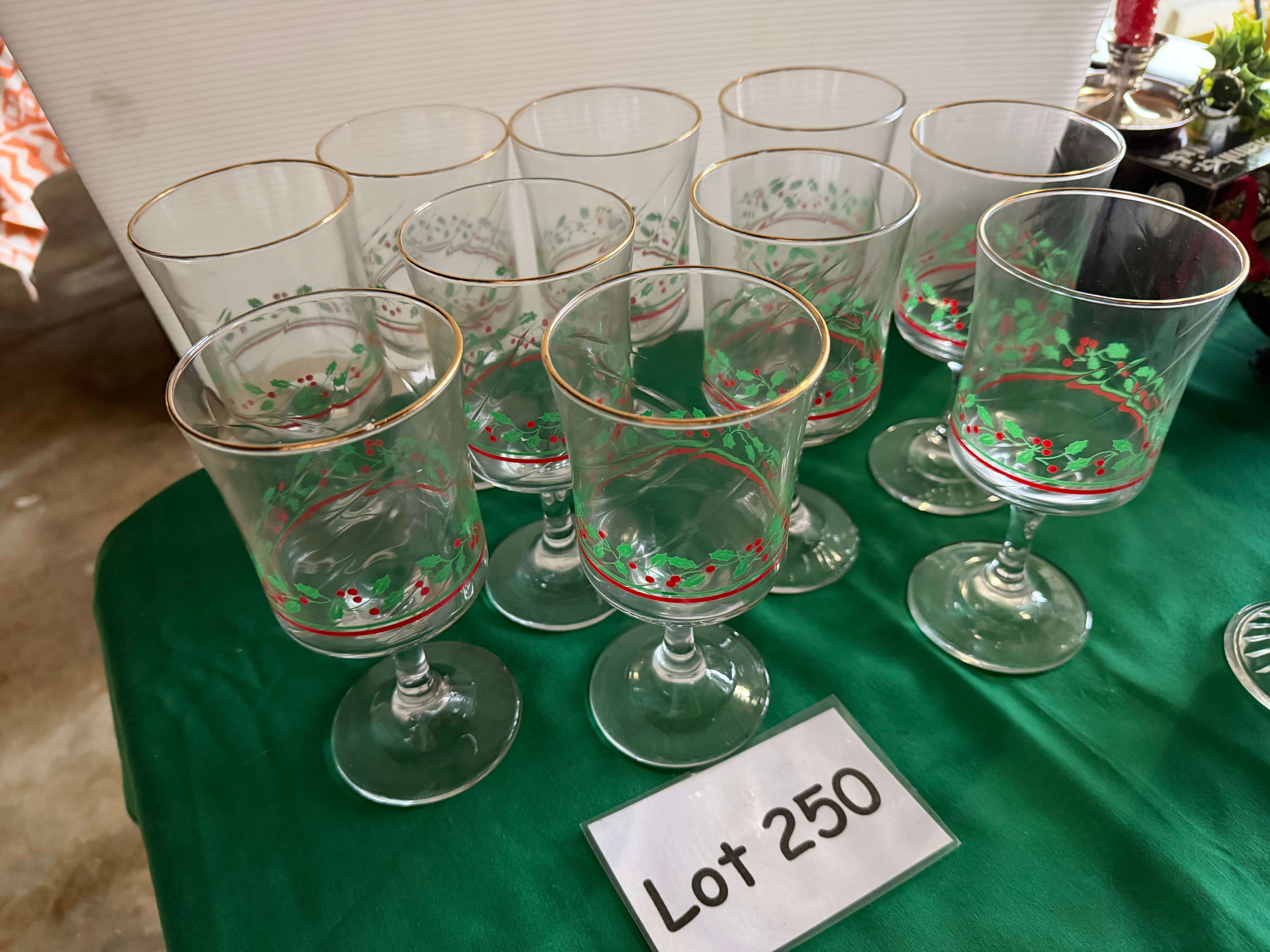 (10) Christmas Goblets w/ gold rims (gold is faded), 7"h