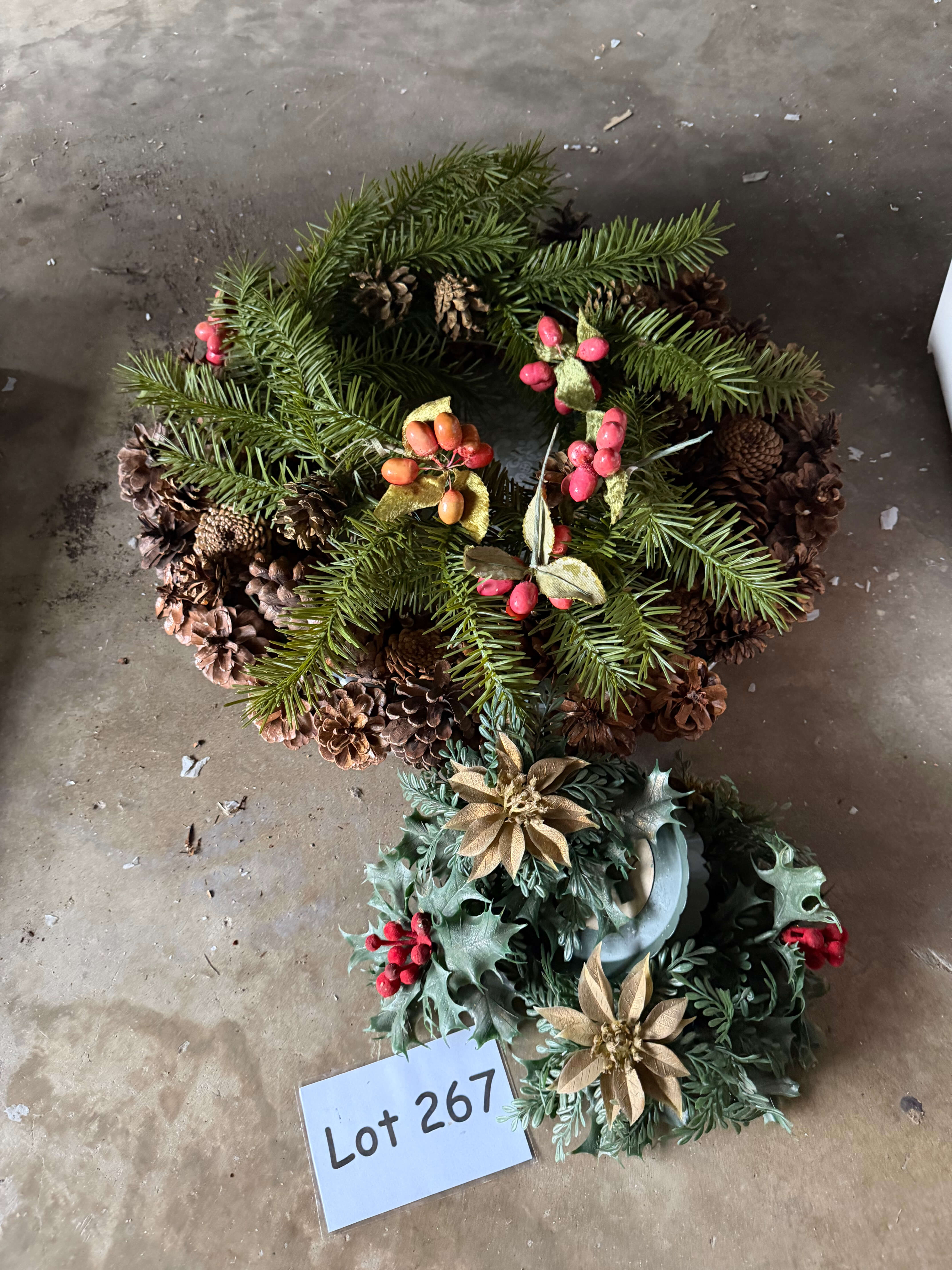 (2) Holiday Wreaths. Pinecone wreath is 18" diam