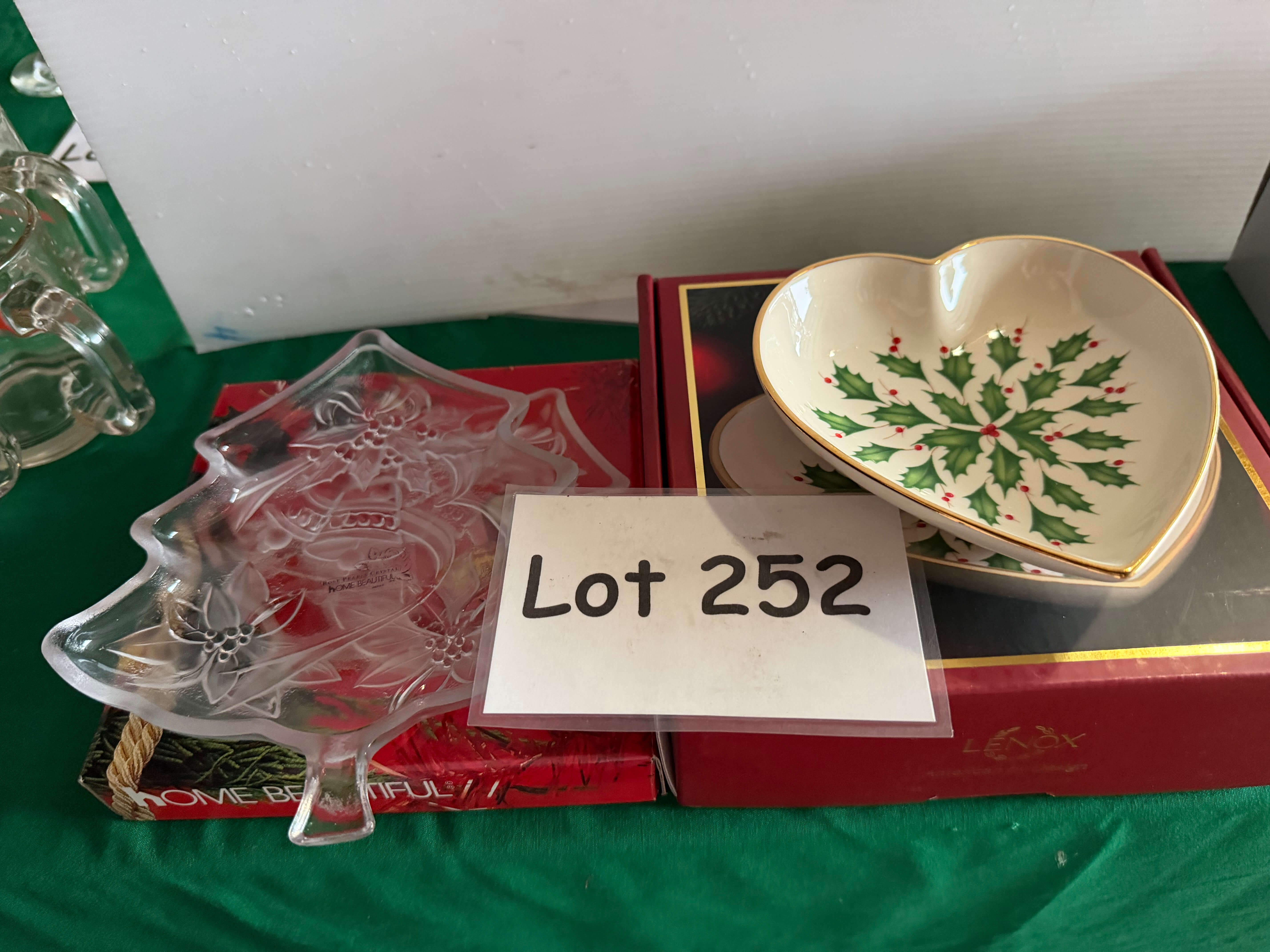 Home Beautiful & Lenox Christmas candy Dishes, in boxes, 6"w
