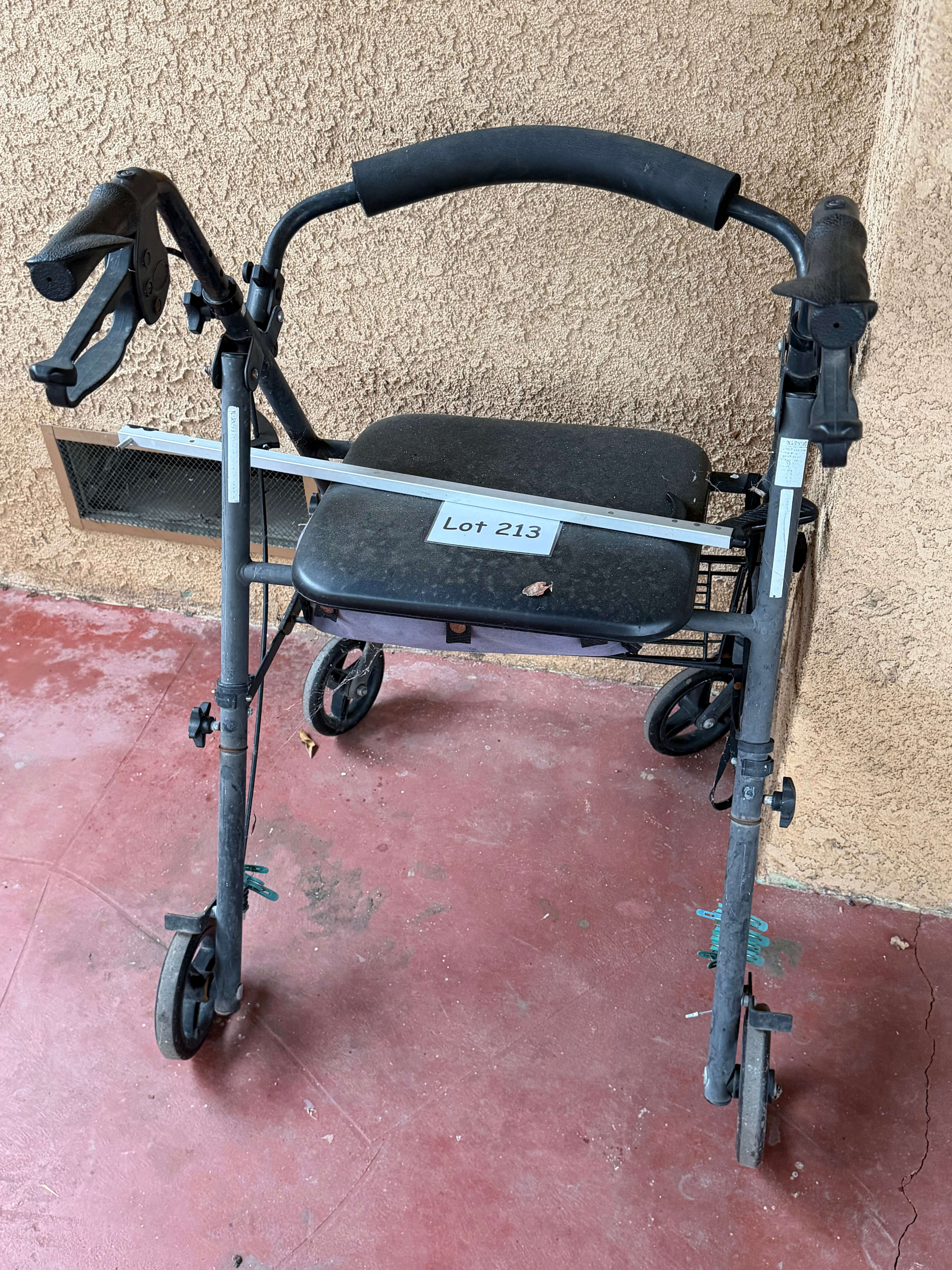 Folding Aluminum Patio Chair, 23"w x 20"d x 31.5"h. Woven strips are shredding/need replacing