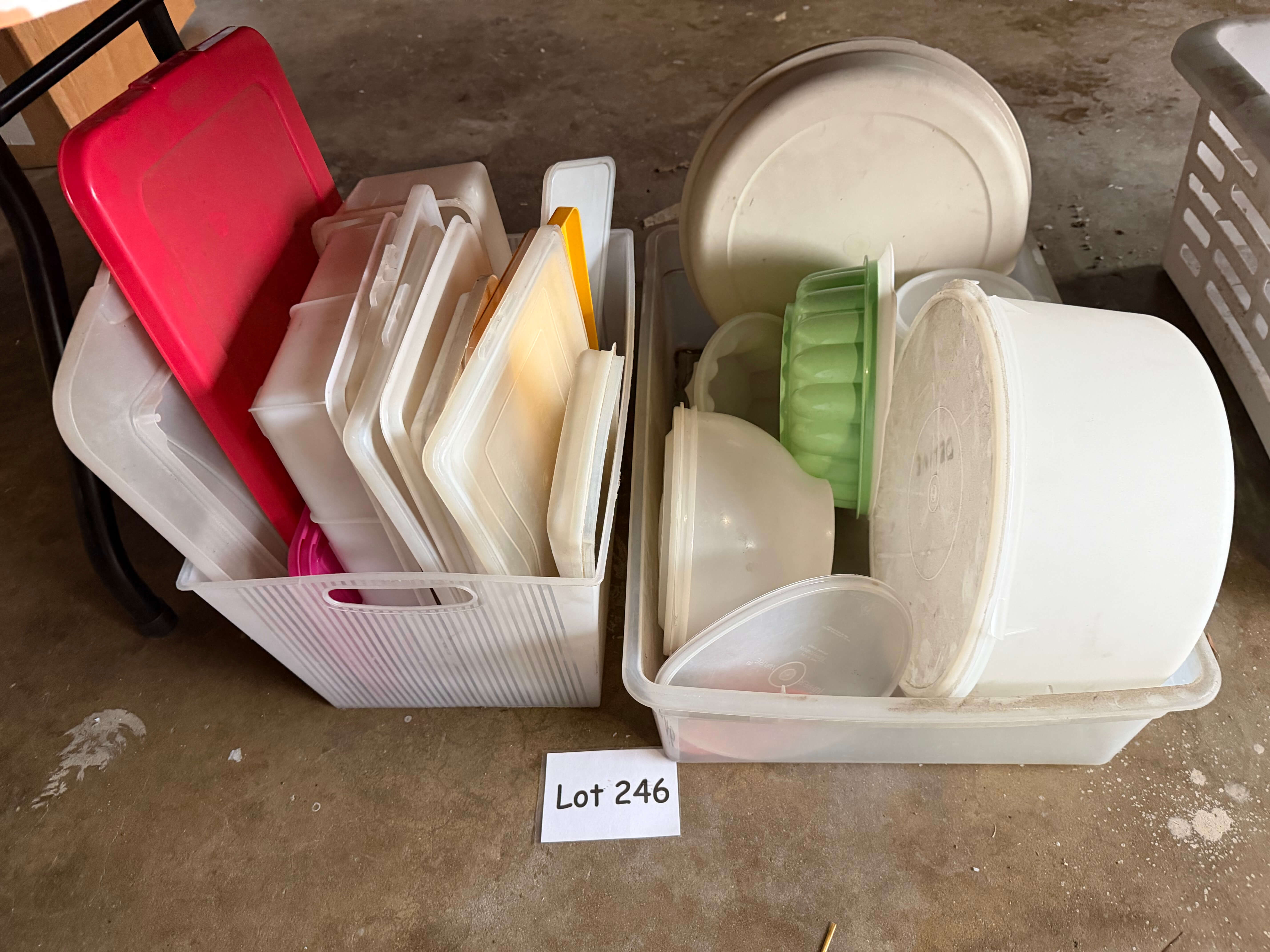 Variety of Plastic Tubs, largest is 19"w x 14"d x 5"h, need cleaning
