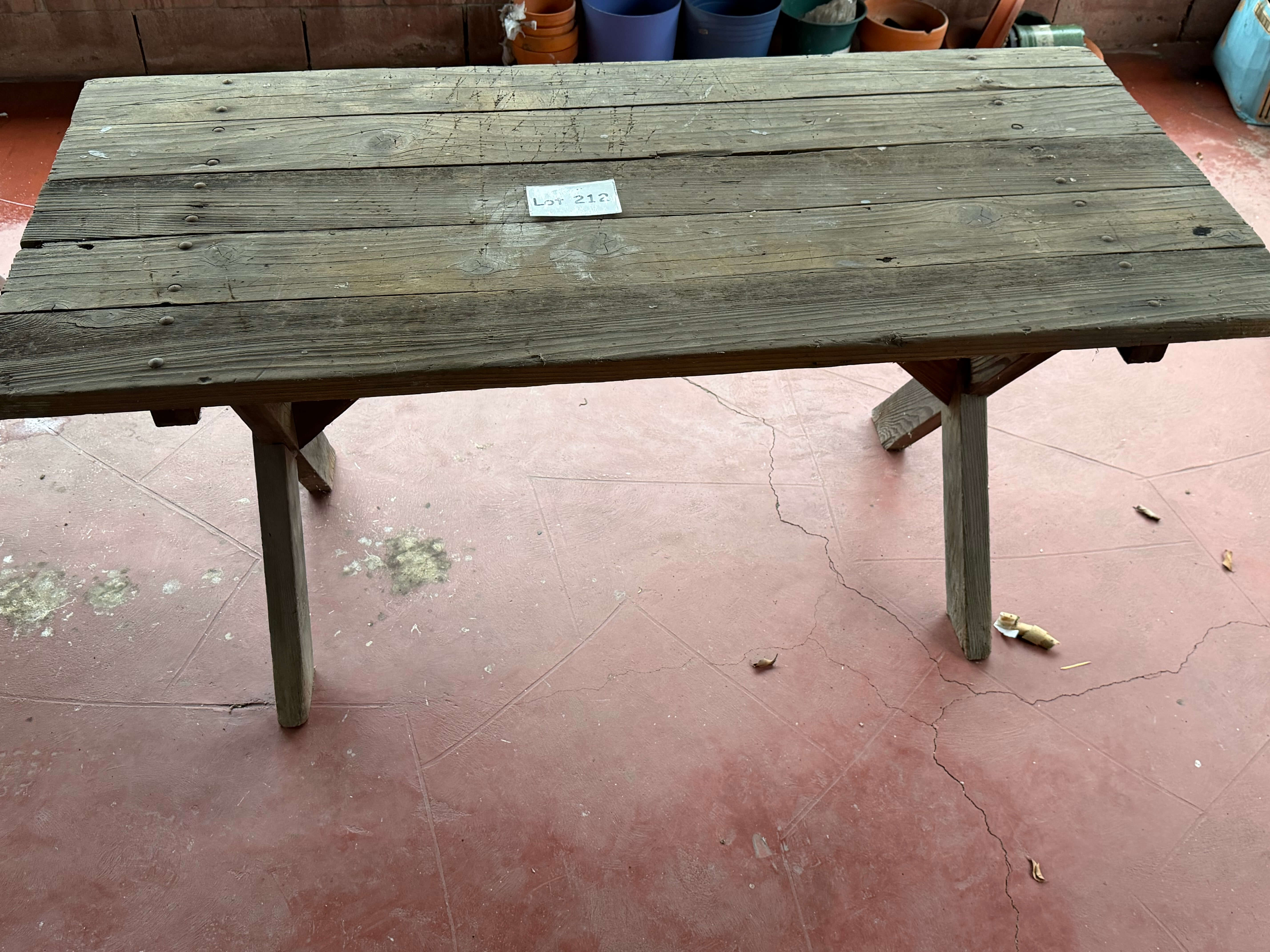 Wood Picnic Table, 58"l x 27.5"w x 27"h. Shows wear