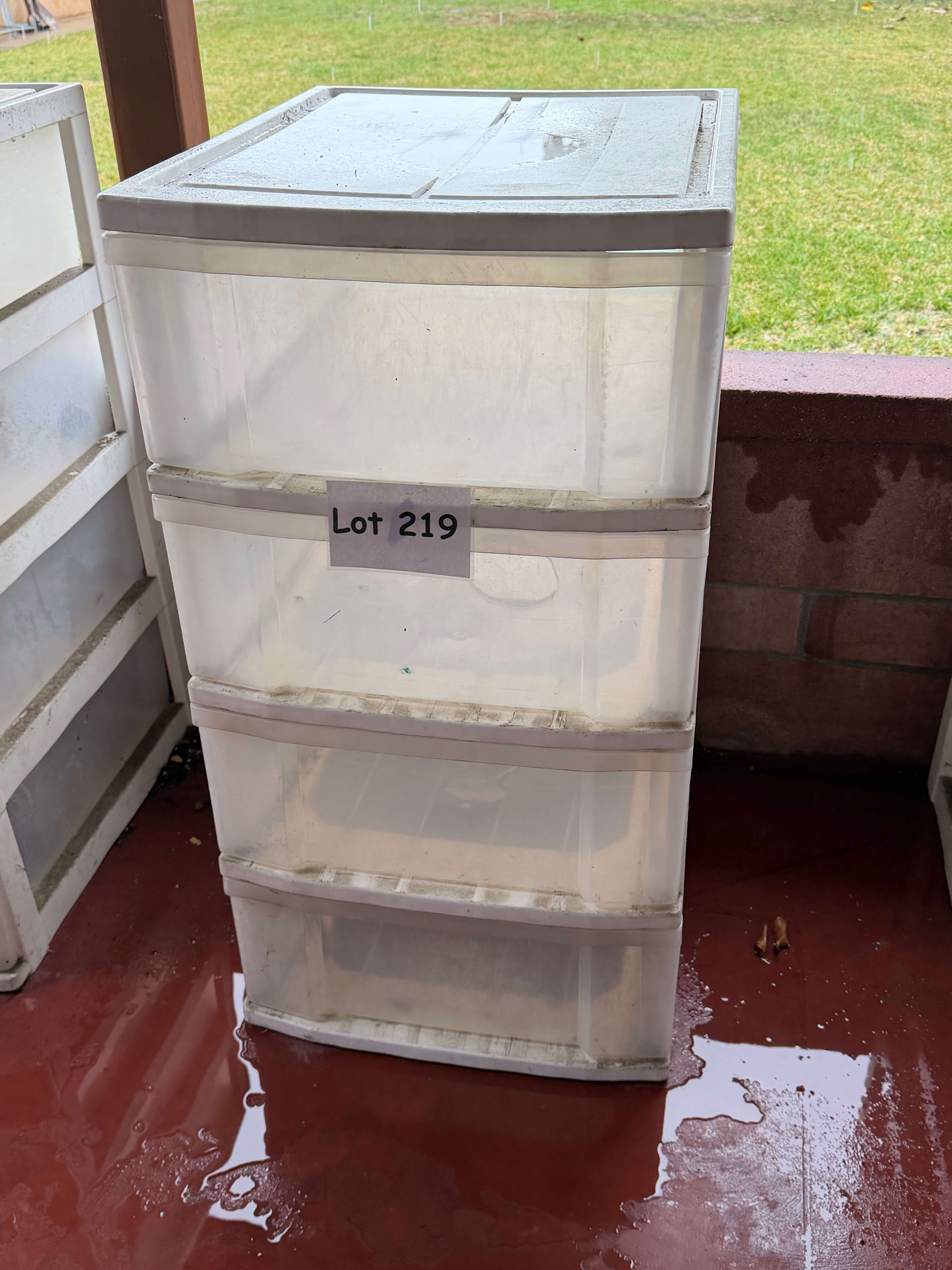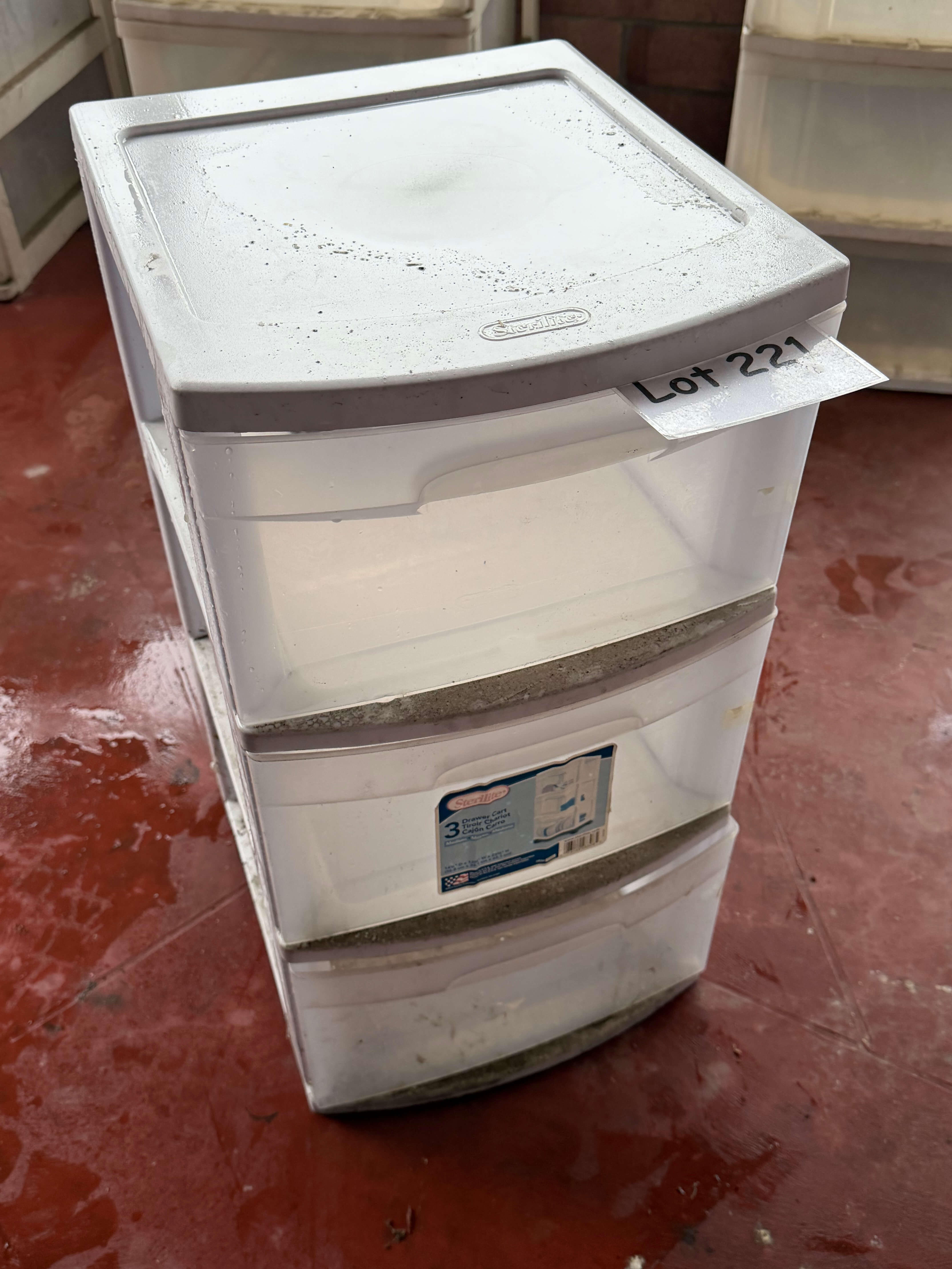 Set of Plastic Storage Drawers, 17"w x 21.5"d x 33"h. Need Cleaning