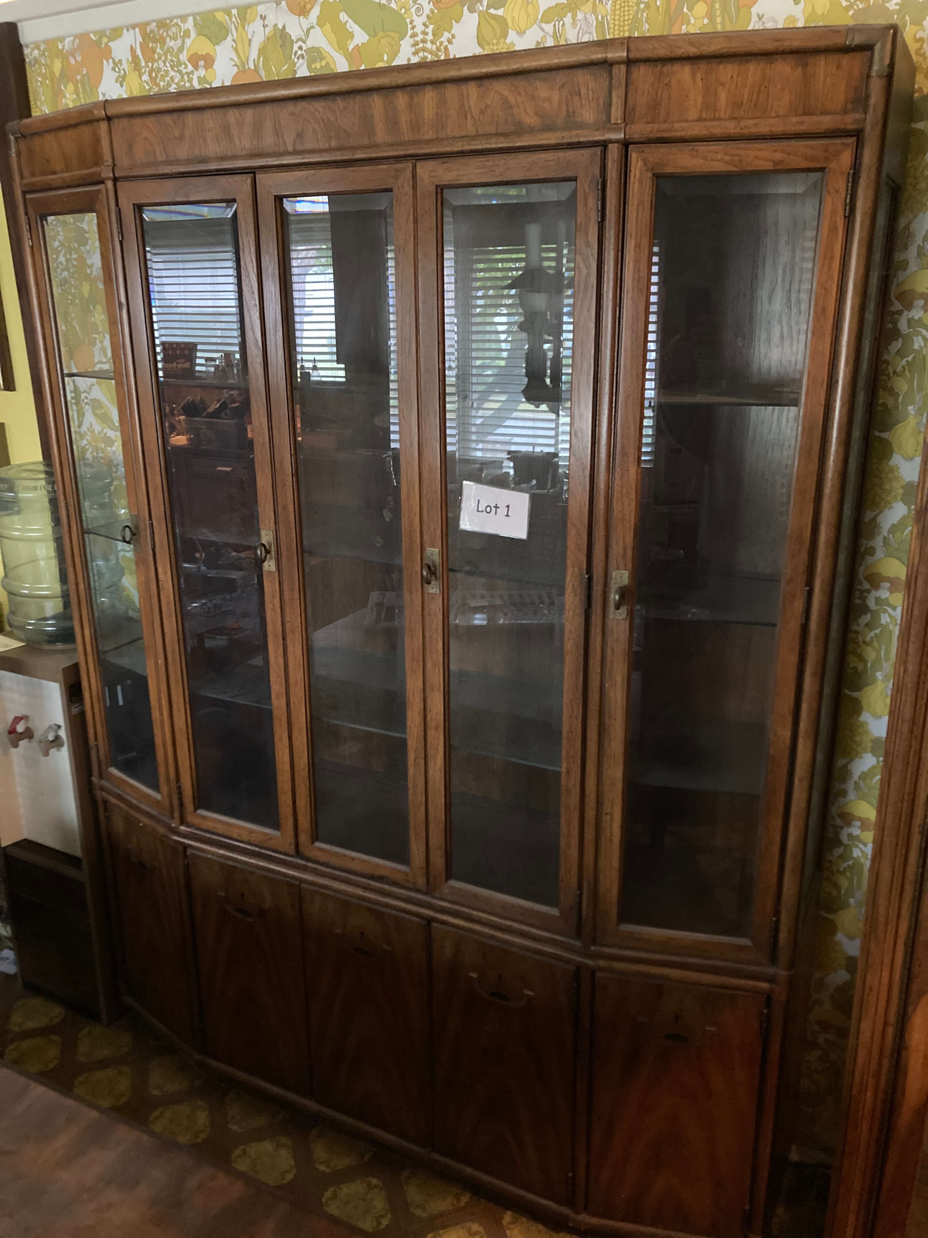 Lighted China Cabinet, 60"w x 15"d x 79"h. Good condition (needs cleaning)