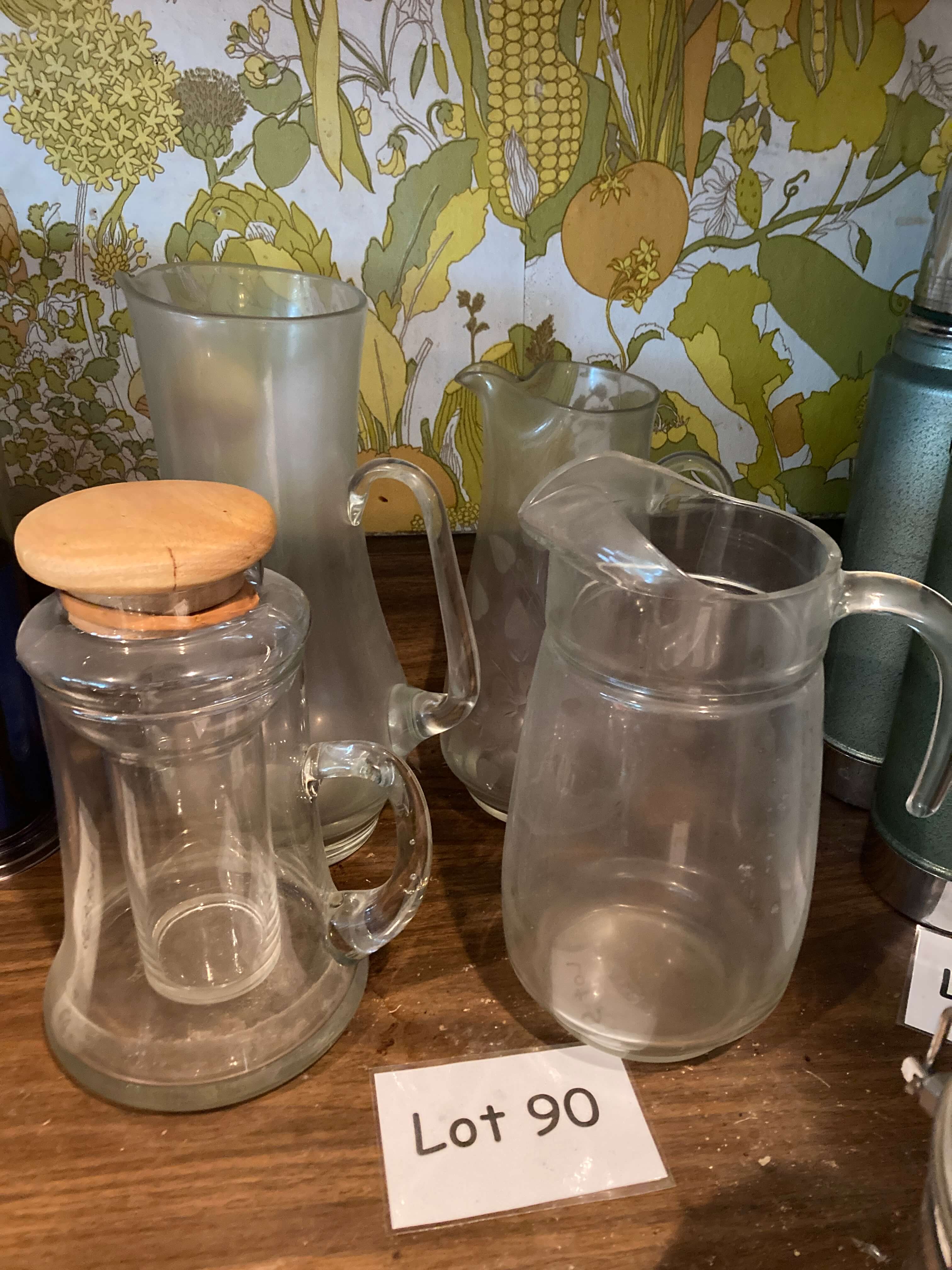 (4) Decorative Glass Pitchers, tallest is 12"h