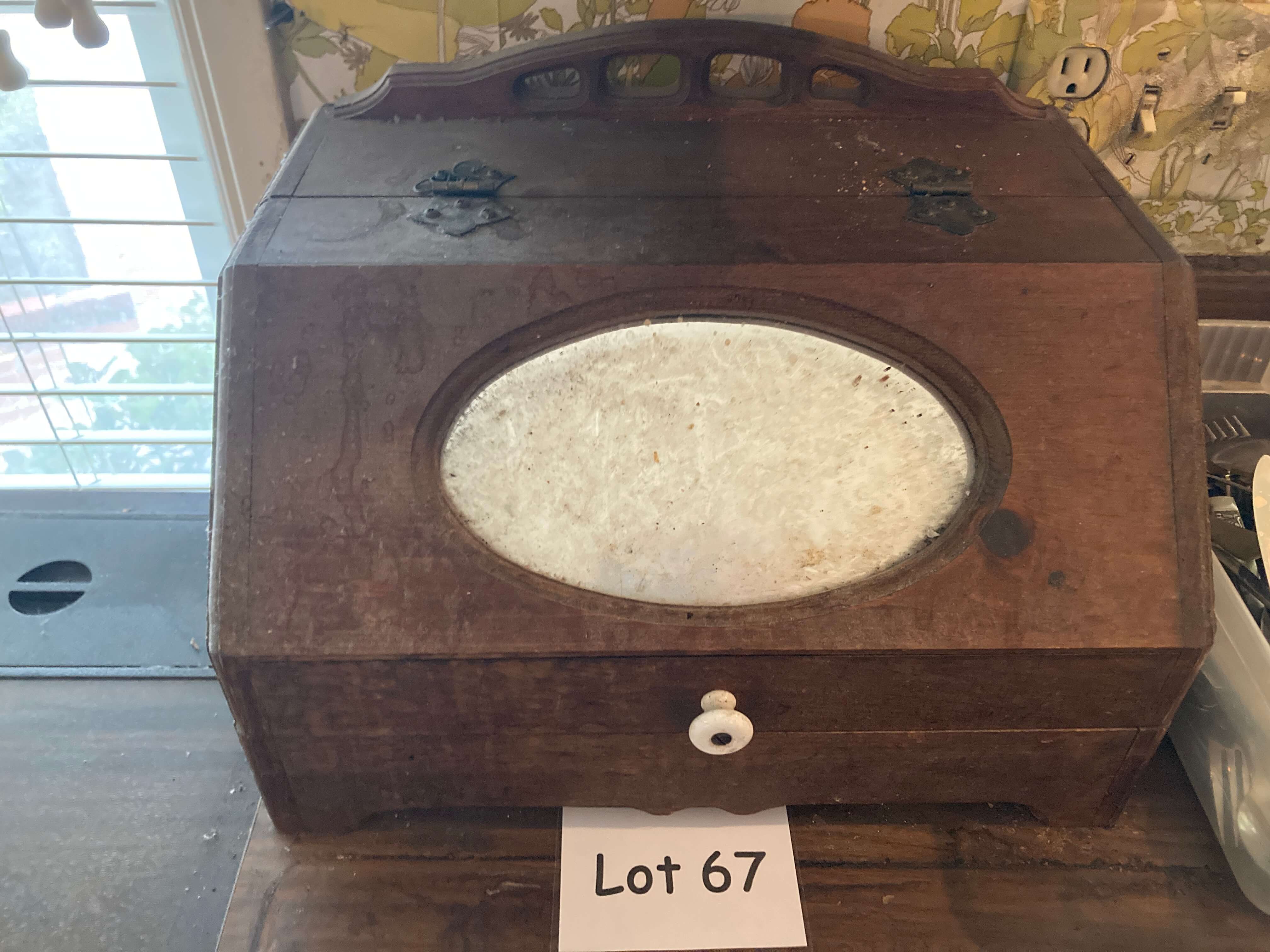 Wooden Bread Box (needs cleaning), 16"w x 11"d x 10"h